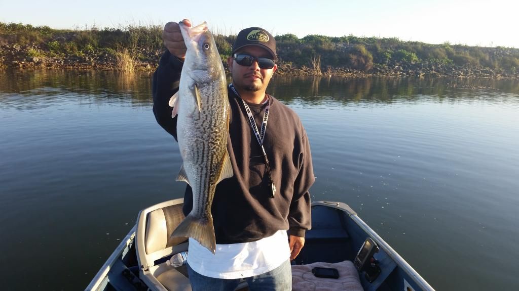 Rick threw the swimbait and I tossed a jerk bait around and we weren't on any hot action, but we had a pretty steady pick of some smaller schoolies on each bait for a little over an hour.